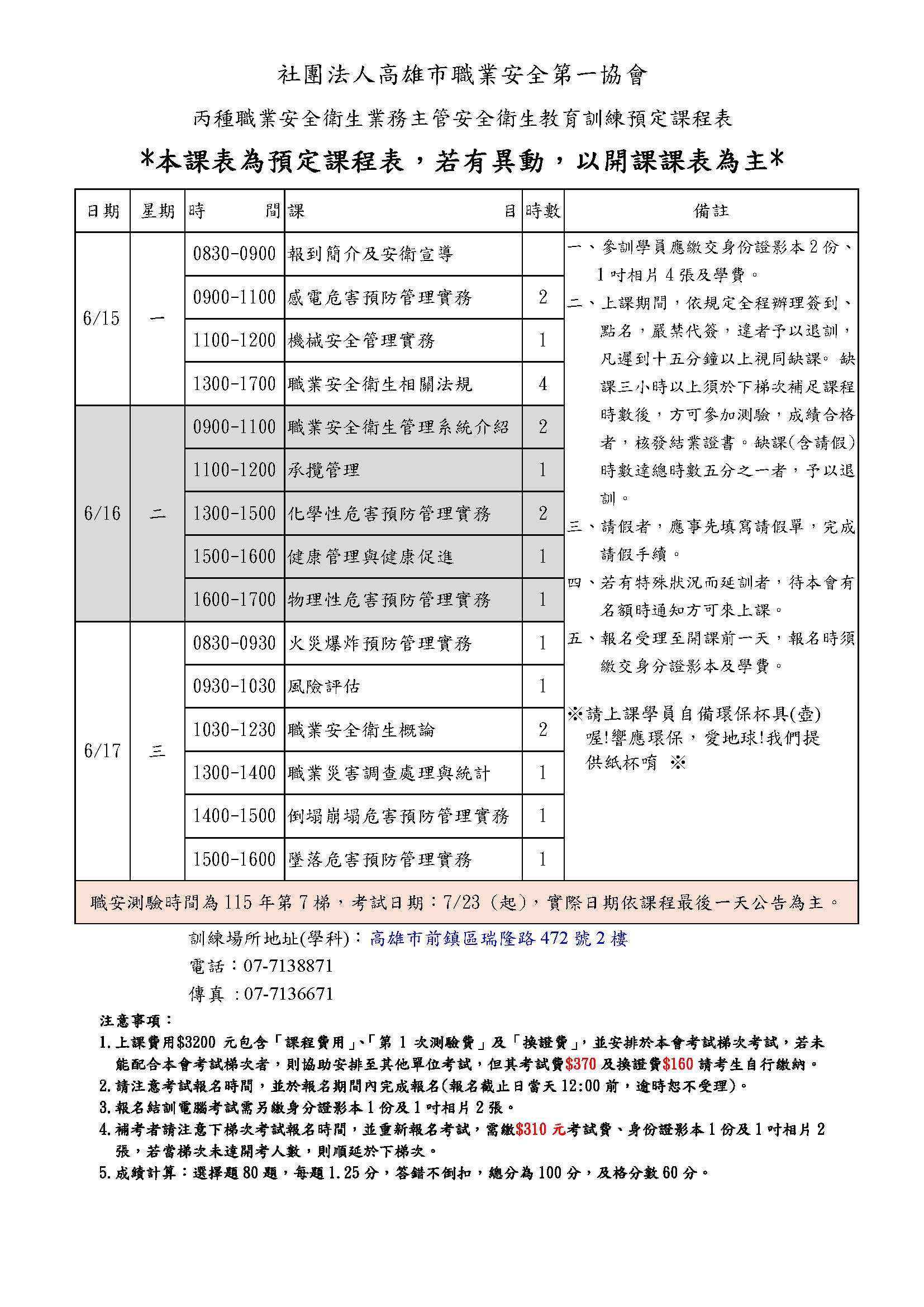 管理類 丙種業務主管 日間 瑞隆 115-06-15 ~ 115-06-17 115-06-12 21 3,200