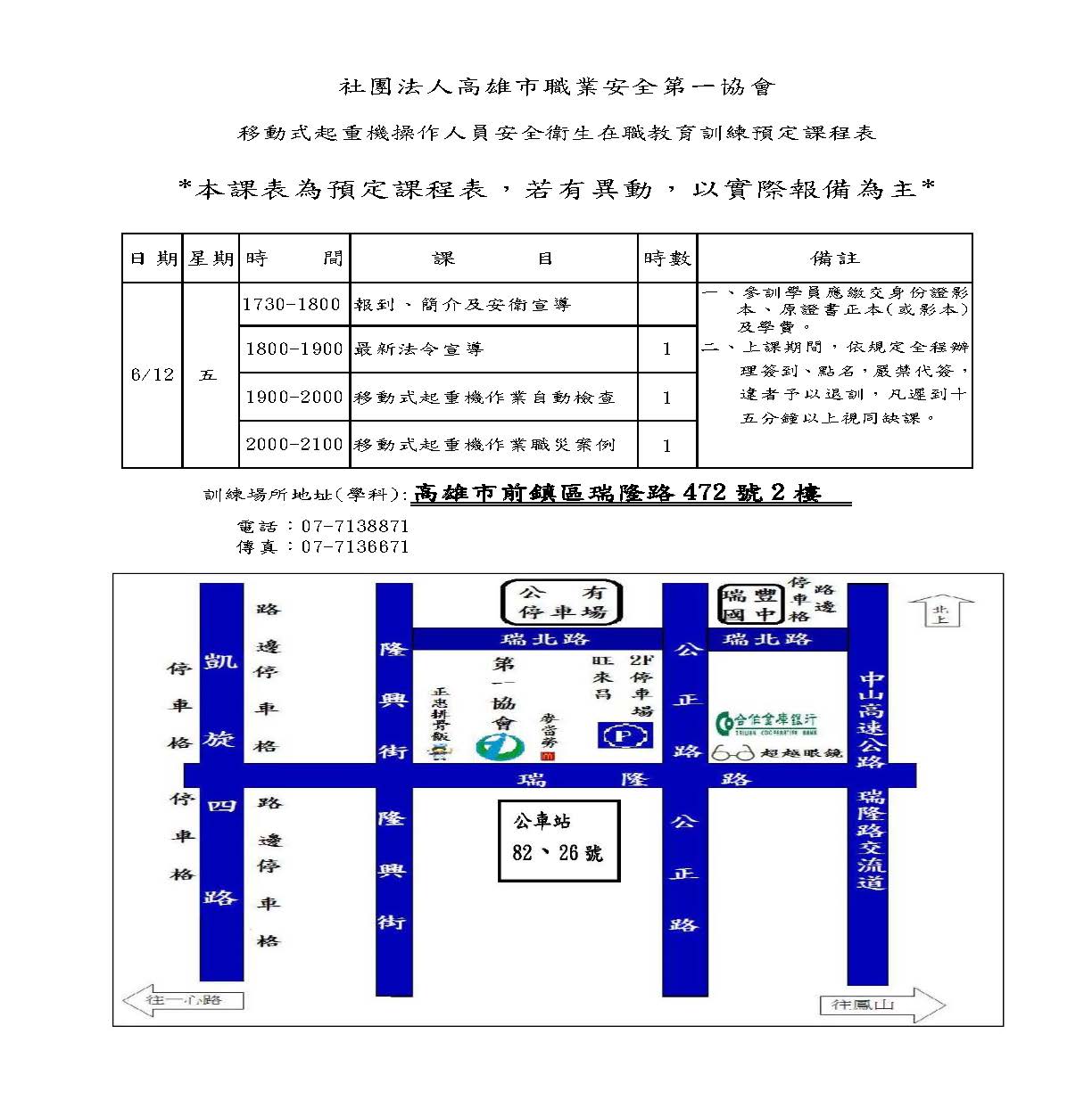 回訓 移動式起重機操作人員回訓 夜間 瑞隆 115-06-12 ~ 115-06-12 115-06-09 3 500