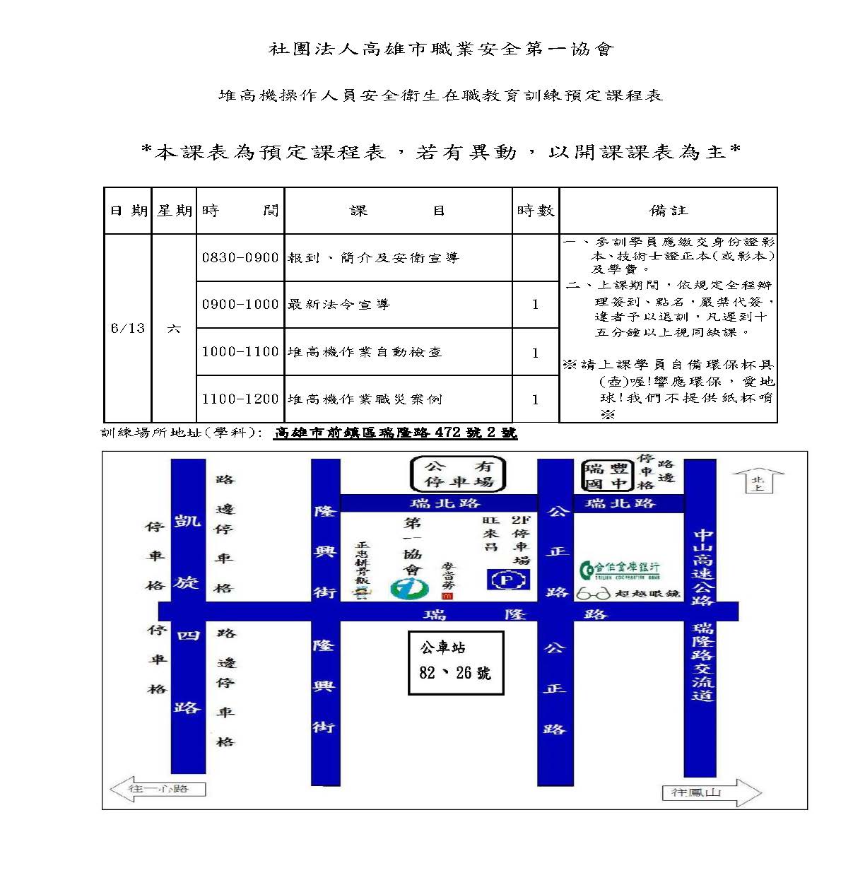 回訓 堆高機操作人員回訓 假日 瑞隆 115-06-13 ~ 115-06-13 115-06-09 3 500