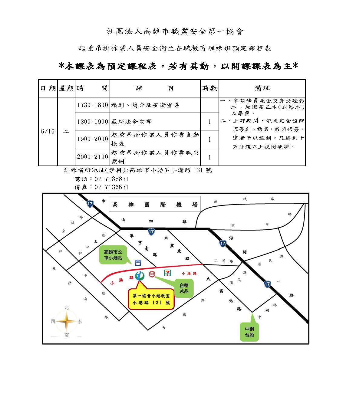 回訓 起重吊掛作業回訓-小港 夜間 小港 115-06-16 ~ 115-06-16 115-06-11 3 500