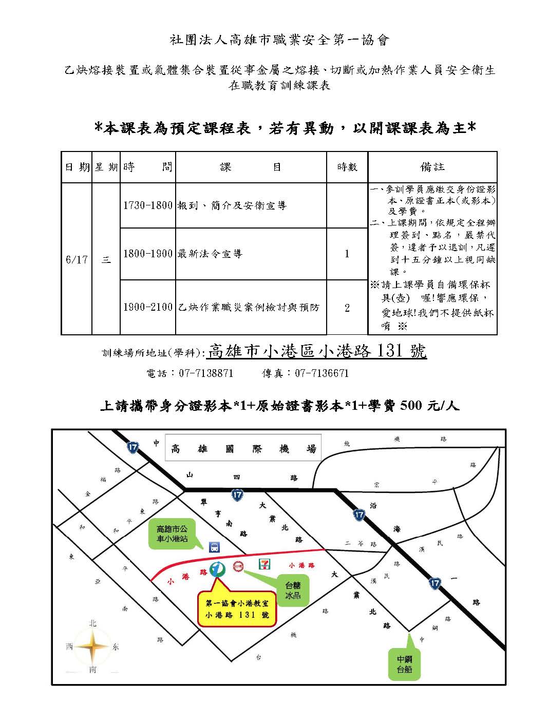 回訓 乙炔熔接等作業人員回訓-小港 夜間 小港 115-06-17 ~ 115-06-17 115-06-13 3 500